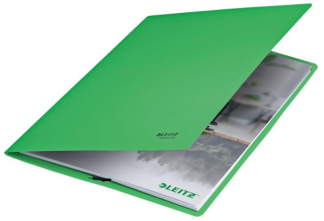 Gumis mappa, karton, A4, LEITZ "Recycle", zöld